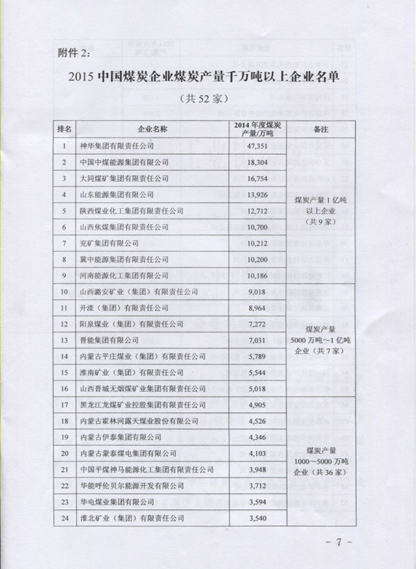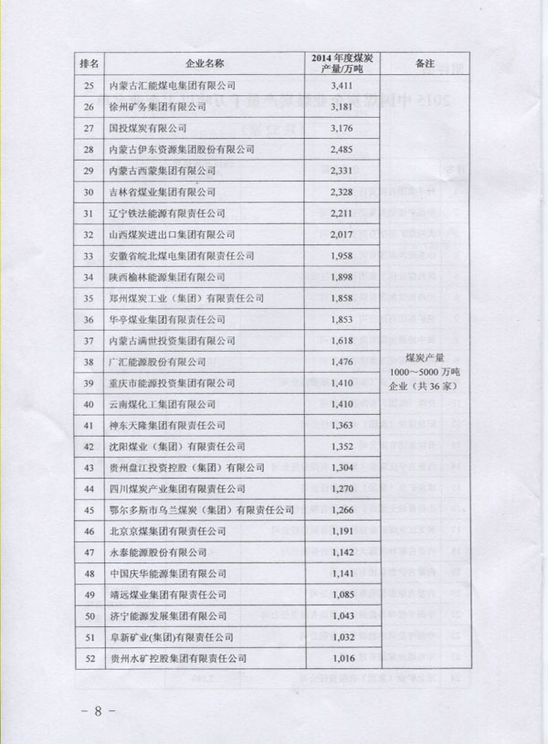 中国煤炭工业协会发布千万吨以上煤炭企业名单